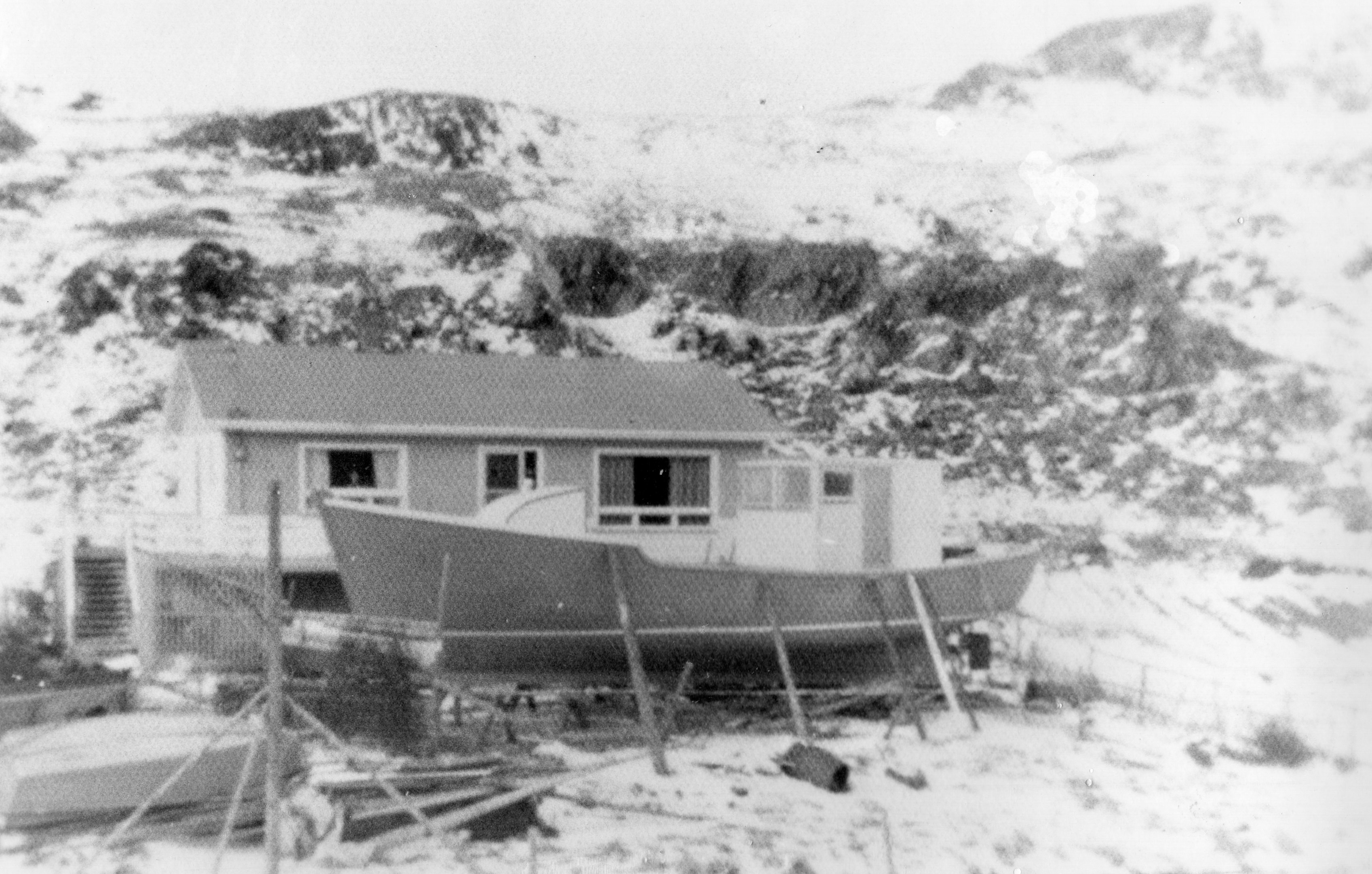 Previous Image Next Image h978-90-bb029-photograph 1973, Blow-me-Down. 45ft longliner,’Miss Morgan,’ under construction. Built and owned by Edward and Howard Morgan.